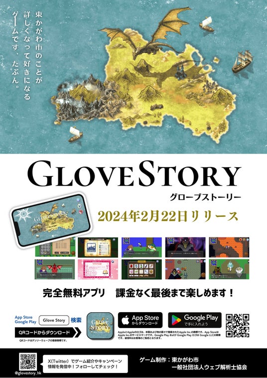 一般社団法人ウェブ解析士協会(東京都新宿区、亀井耕二代表理事:以下「WACA」)と香川県東かがわ市は、同市の市制施行20周年を記念して制作したスマートフォン向けロールプレイングゲーム(RPG)「Glove Story」を2024年2月22日に正式公開します。