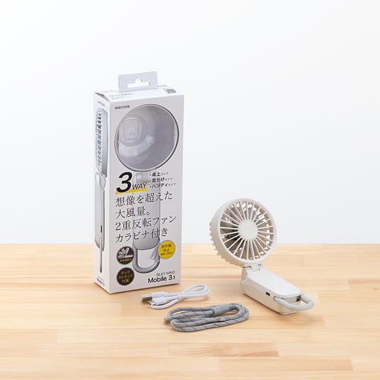 リズム独自の2重反転ファンを採用し、コンパクトサイズなのに大風量を実現。ハンディ・ハンズフリー・デスクと、くらしのさまざまなシーンに対応する3way です。持ち運びに便利なカラビナ付きのため、さまざまなところに取り付けでき、最大約10時間運転可能なため、屋外でも活躍します。誤作動防止機能付なので、鞄の中で誤って電源を入れてしまう心配もありません。