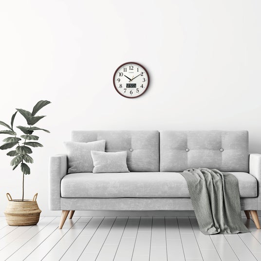 トレンドに左右されないロングライフデザインの液晶付き電波掛時計シリーズです。温度・湿度表示付きで、液晶が1つのタイプ、2つのタイプからお選びいただけます。