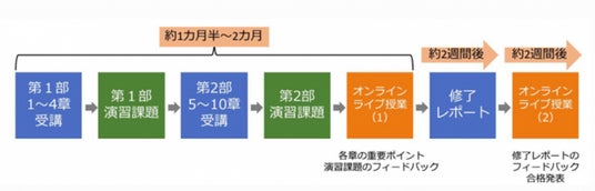 事前課題作成から修了レポート提出まで、概ね1.5カ月です。詳細はこちらをご覧ください。