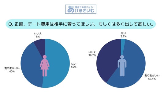 債務整理や闇金などの借金問題をテーマにしたメディア「あけるさいむ」を運営する株式会社ONE FOR ONEでは2024年4月に「デート代割り勘問題」について調査するためアンケートを実施しました。(20~30代女性・男性対象)