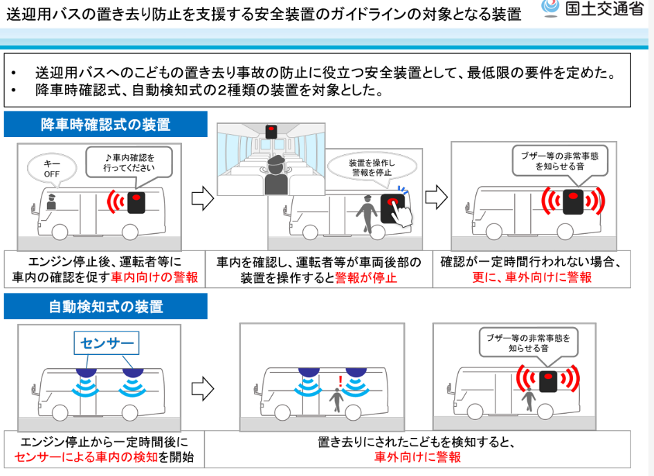 引用:国土交通省 送迎用バスの置き去り防止を支援する安全装置のガイドライン