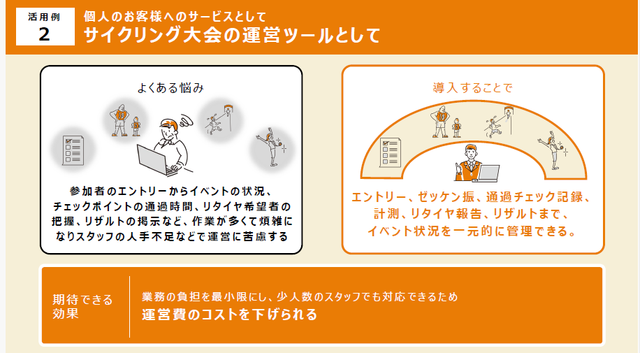 TACTICSの導入後、従来ならチェックポイント1ヶ所につき2~3人のスタッフを配置していたのが、1~2人で対応ができるようになりました。またスタート・ゴールの取り回しでも3人程度の人件費の削減に成功しました。今後、慣れてくればチェックポイントの対応は1人でも十分対応できるようになると考えています。
