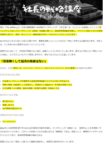 現在、「社長の戦略講座」というオリジナルブランドを立ち上げ、理念や経営についての考え方の情報を発信しています。