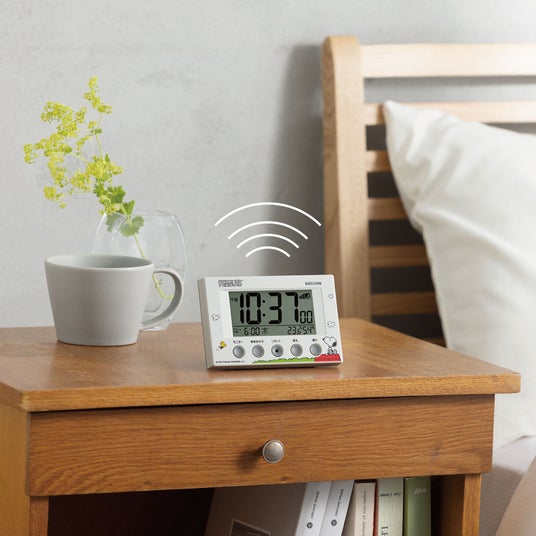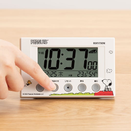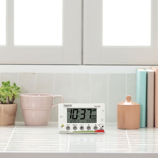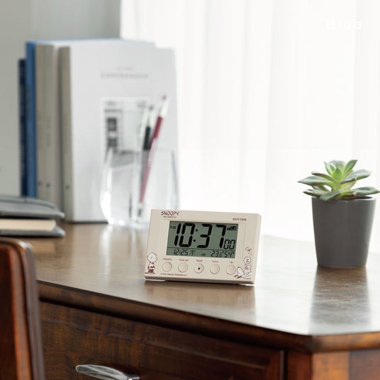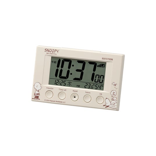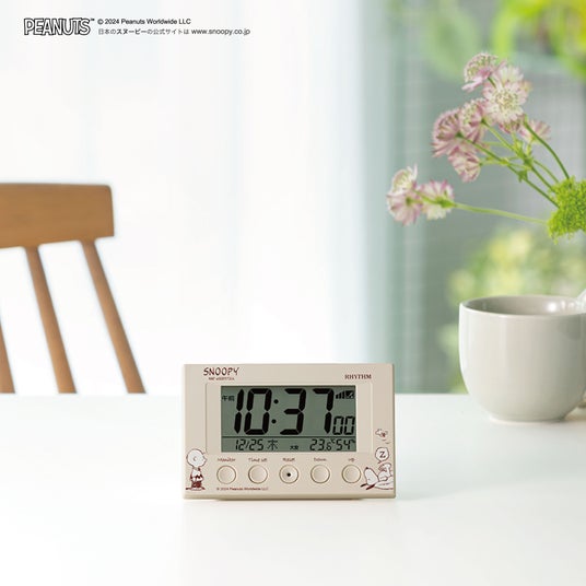 くらしになじみやすいシンプルなスヌーピーデザインの電波デジタルめざまし時計です。