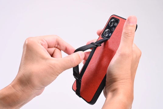 1.エアリーで快適な使い心地スマホケースに取り付けるシリコンゴム部分と、持ち手のバンド部分を分離させることで、適度な弾力性を持ちながらも締め付け感がなく、まるでハンモックに包まれているような使用感を実現しました(この使い心地と商品形状が「ハンモッ君 hammock’n」の由来です)。また、ゴムバンドと皮革バンドを繋ぐ2つのOリングは左右に移動でき、左右どちらの手でも快適にフィットします。