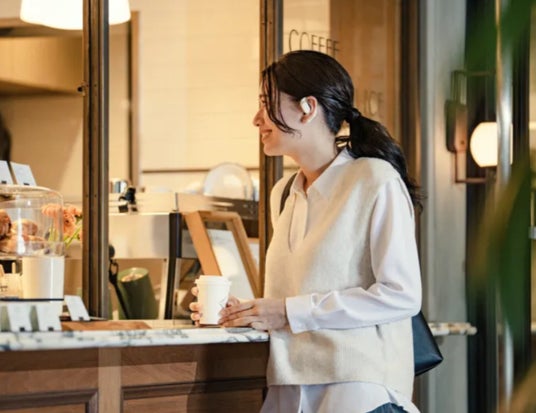装着したまま会話が可能で、例えばカフェでの“コーヒーを一つ”といった注文もクリアに聞き取れます。