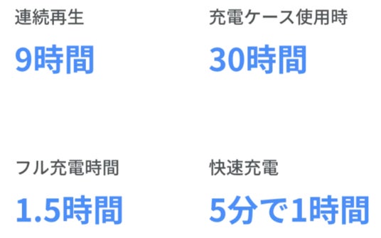 最大30時間の連続再生に加え、5分の快速充電で1時間使用可能。