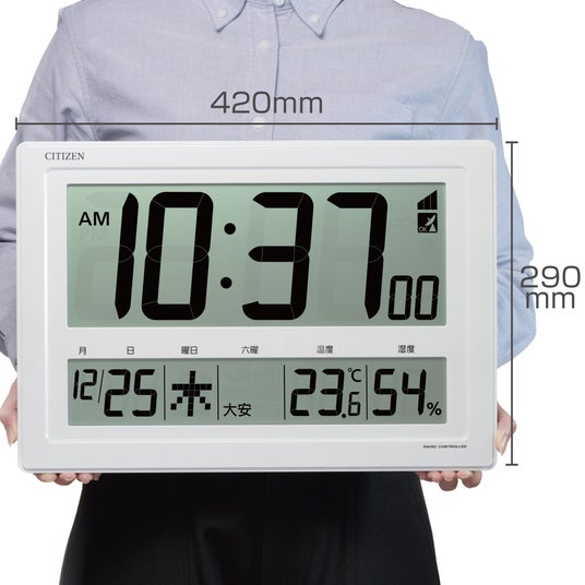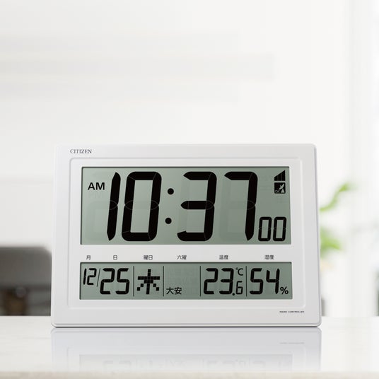 遠くからでも見やすさ抜群のサイズ感と、視認性の高い9セグを採用した大画面電波デジタル時計です。時刻の他にも、カレンダー・六曜表示・温湿度表示など使いやすい機能が揃っています。