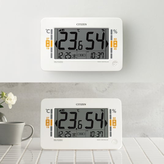 毎日の体調管理に役立つ環境目安表示付きの高精度デジタル温湿度計に掛置兼用モデルが登場!