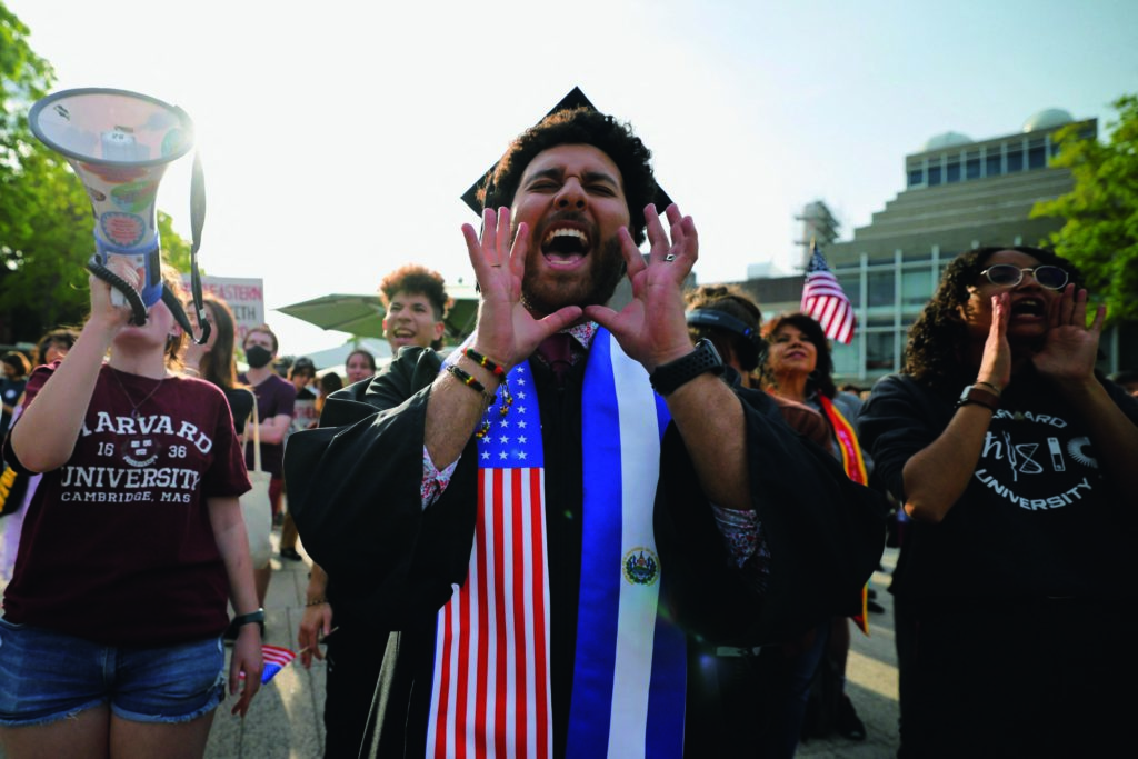 今こ年とし1月 がつに2期き目めの政せい権けんをスタートさせたアメリカのトランプ大だい統とう領りょうの政せい策さくに、国こく内ないで反はん発ぱつが強つよまっています。(「Newsがわかる2025年8月号」より) トランプさんは5月がつ22日にち、ハーバード大だい学がくの外がい国こく人じん留りゅう学がく生