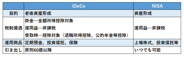 一方、NISAは運用による利益が非課税になる制度。運用で得た資金の使い道は限定されず、いつでも引き出しが可能だが、所得控除はない。iDeCoもNISAも運用益が非課税になる点は共通する。使い勝手を重視するならNISA、老後資金や長期の節税効果を狙うならiDeCoが適しているが、両者を併用することも可能だ。