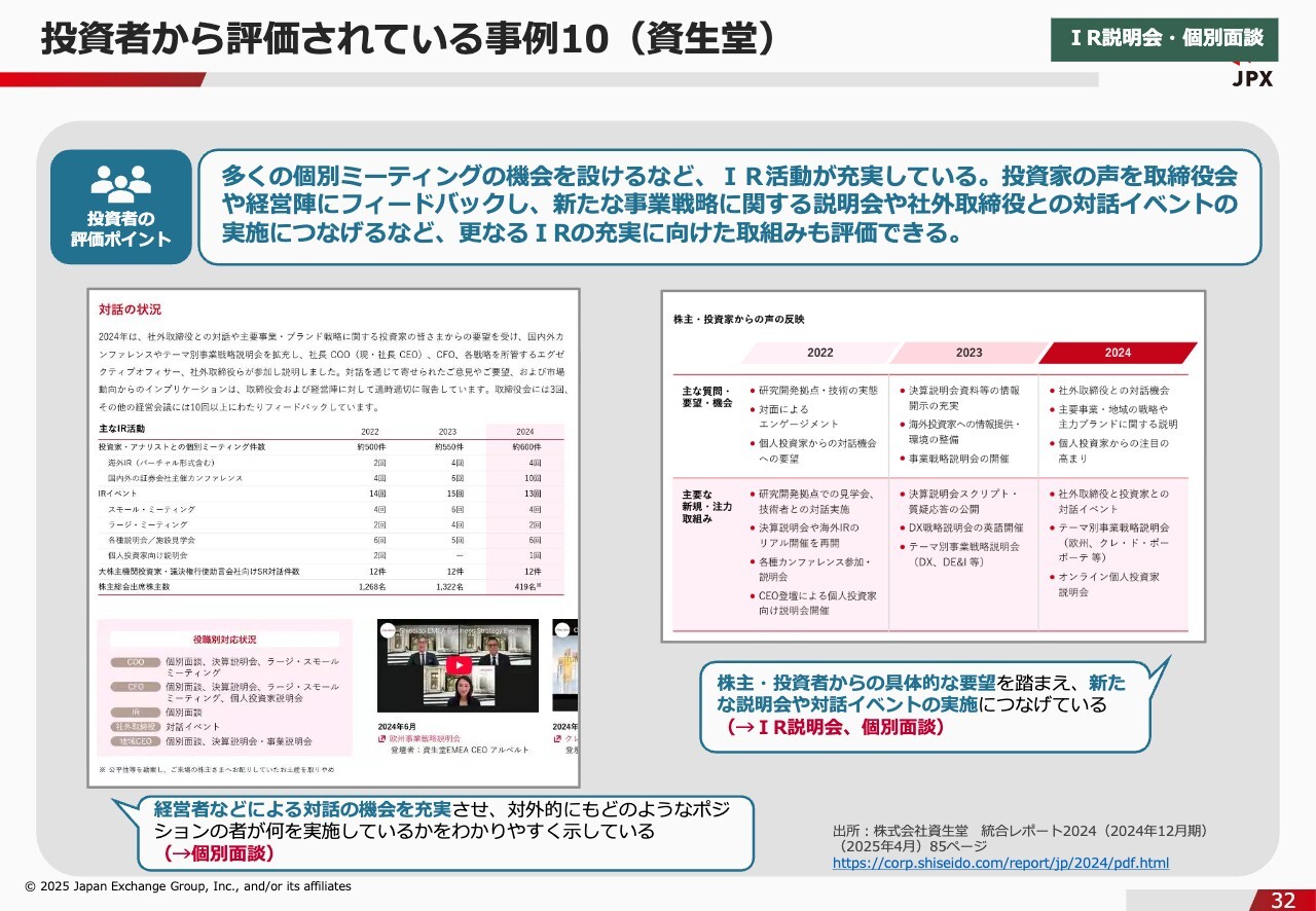 投資者から評価されている事例10(資生堂)