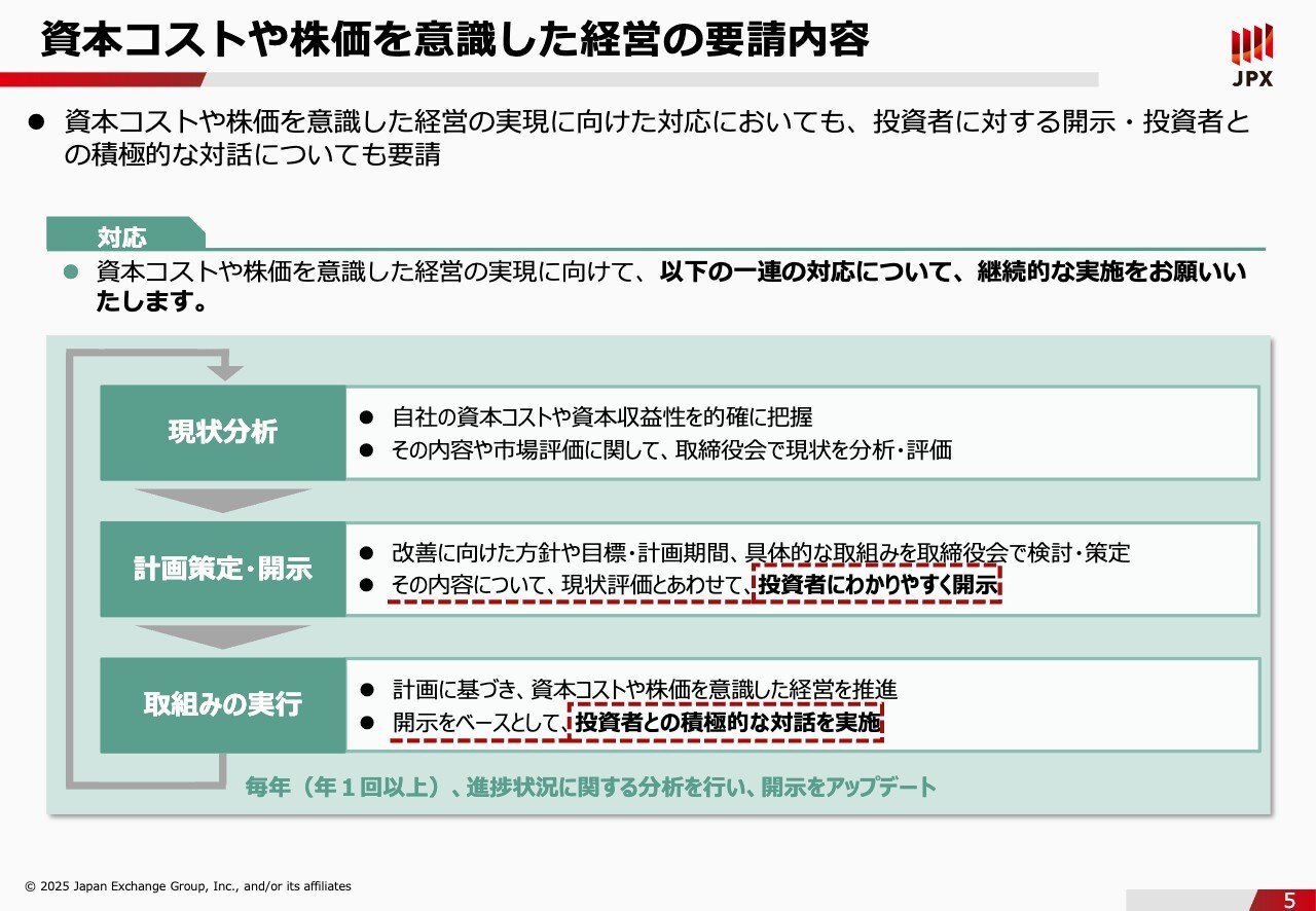 資本コストや株価を意識した経営の要請内容