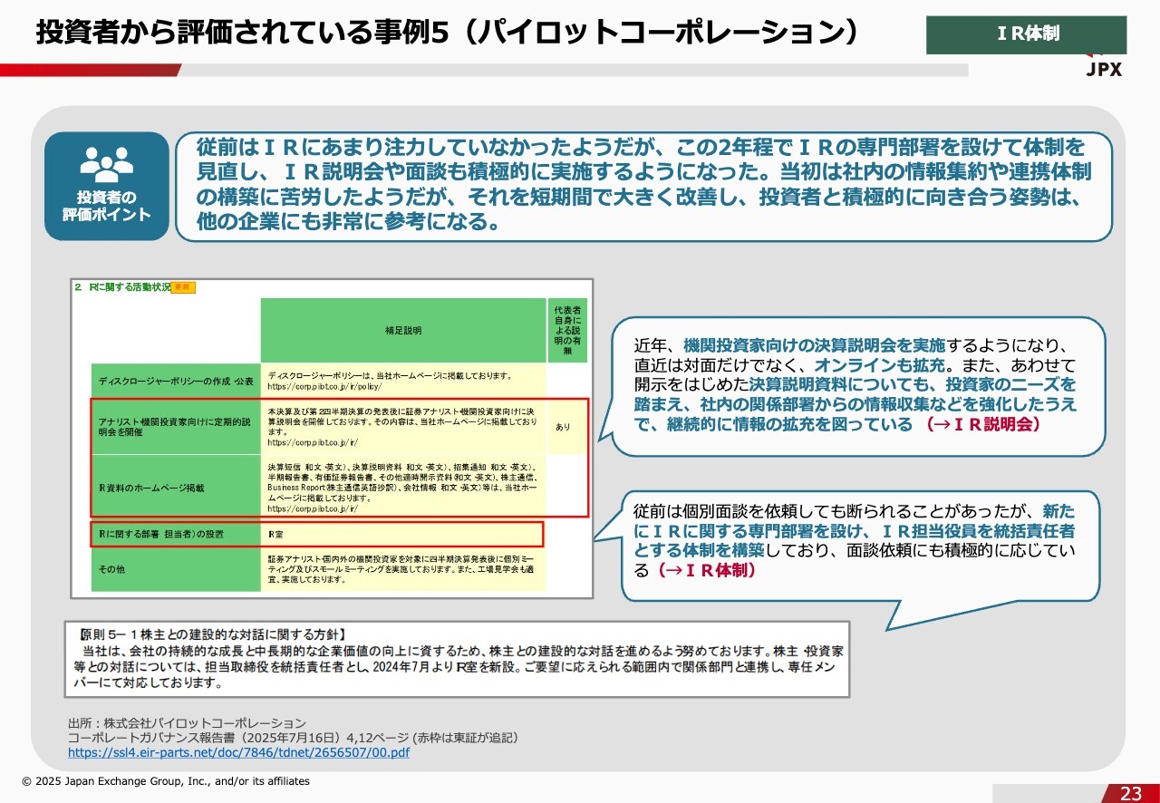 投資者から評価されている事例5(パイロットコーポレーション)