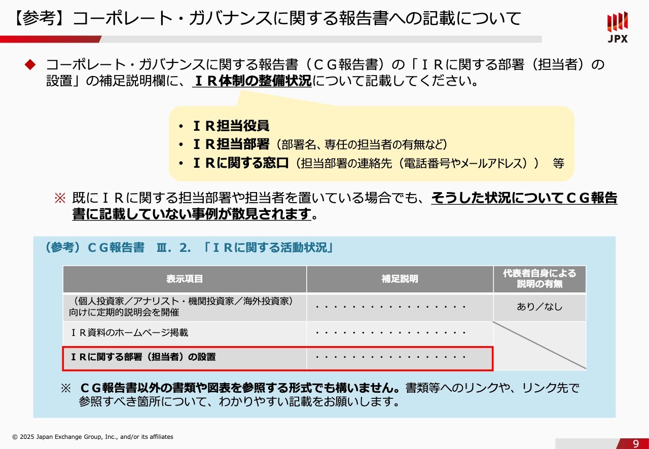 【参考】コーポレート・ガバナンスに関する報告書への記載について