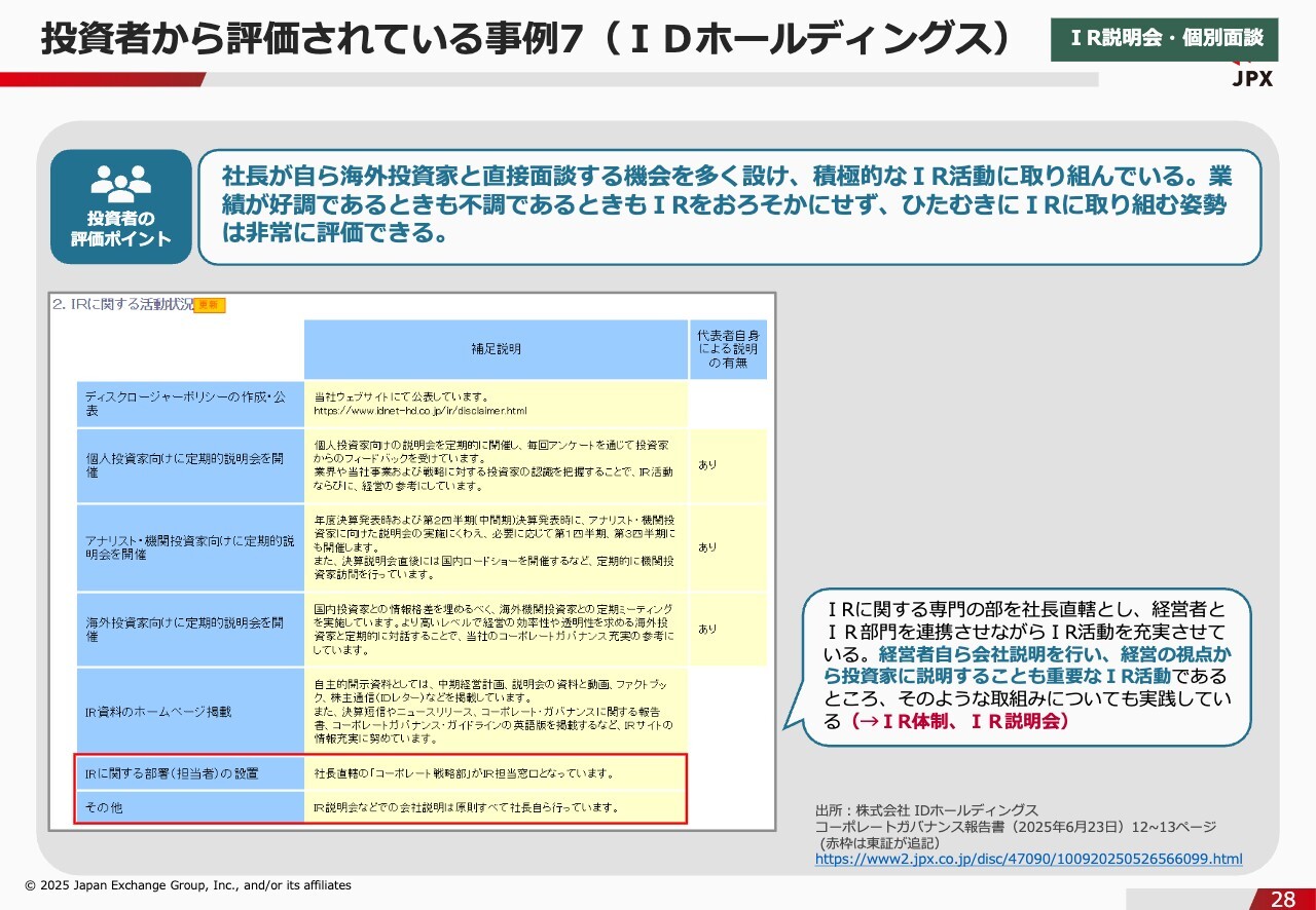 投資者から評価されている事例7(IDホールディングス)