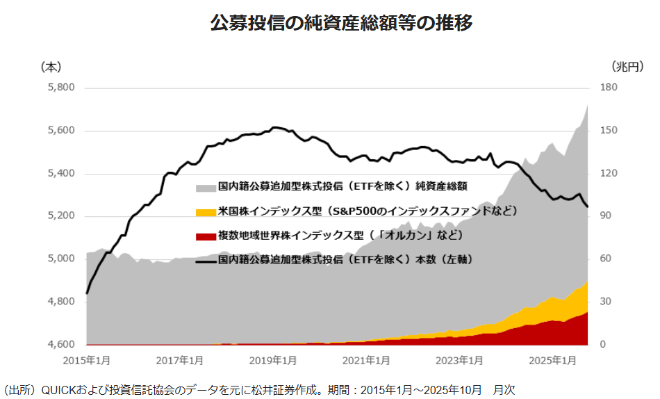 (出所)QUICKのデータを元に松井証券作成。ETF、DC専用、SMA・ラップ専用を除いた国内籍公募追加型株式投信が対象