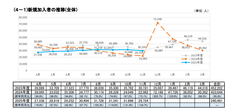 iDeCo新規加入者数の推移(2025年11月)拡大表示