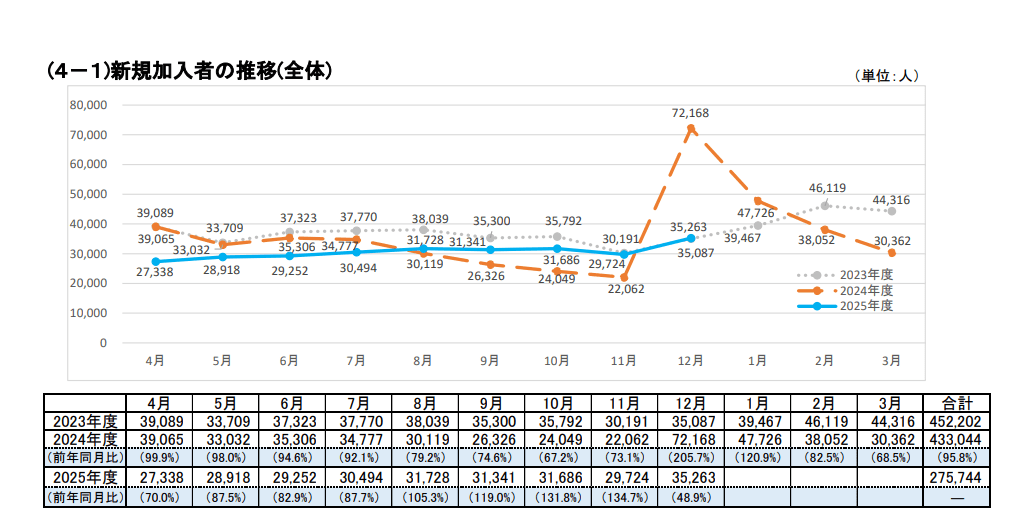 iDeCo新規加入者数の推移(2025年12月)拡大表示